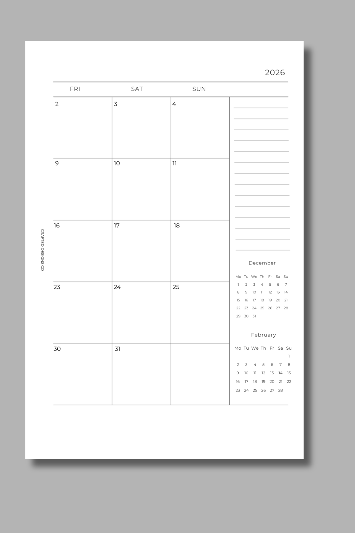 Stay organized all year long with our NEW 2026 Dated Monthly Calendar Insert with Notes from Crafted Designs Co. Designed for planner lovers who value both structure and flexibility, this insert makes it easy to see your entire month at a glance.