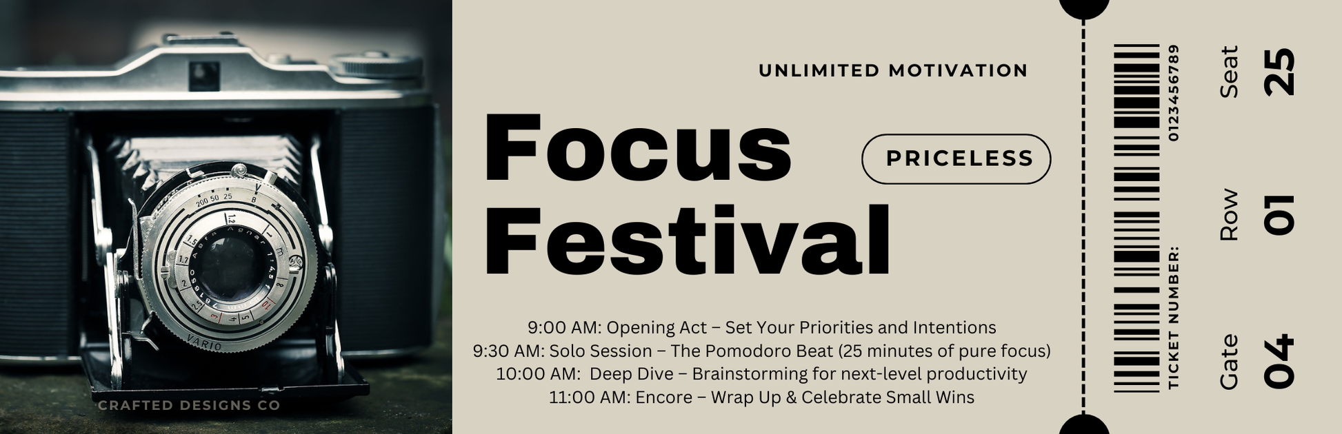 Focus Festival Journaling Card — The Ticket to Your Most Productive Day