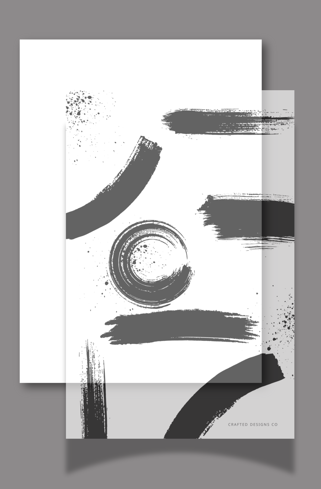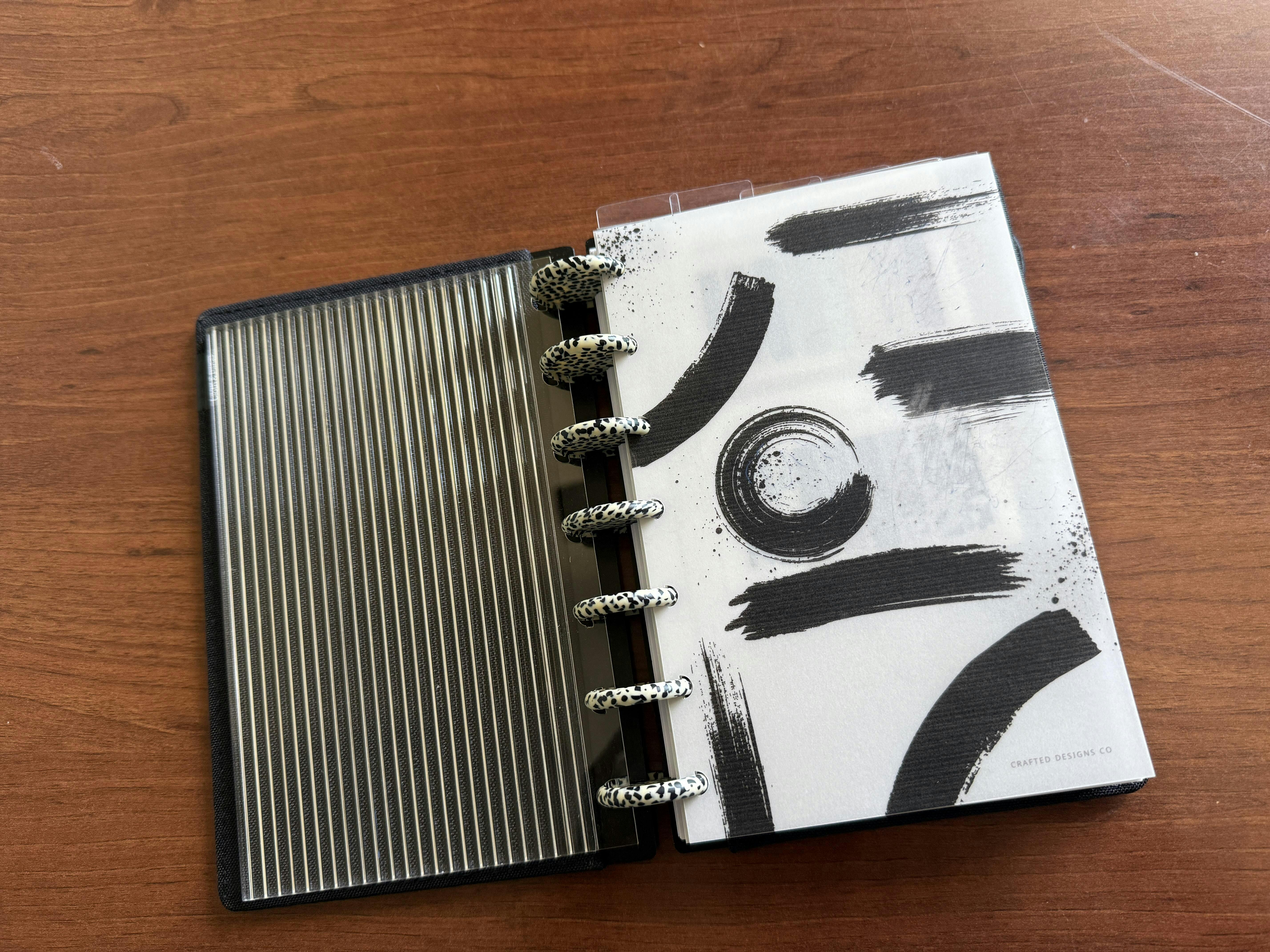 Add a bold and artsy touch to your planner with the Ink In Motion Dashboard. This high-quality vellum design features dynamic black brushstrokes and expressive paint splashes, bringing movement and creativity to your planner setup.